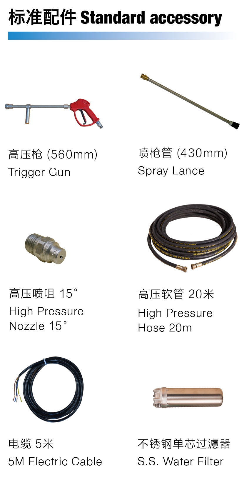 High pressure water jet machine is a kind of cleaning equipment for high-pressure cleaning pump, which is used for cleaning of professional heat exchangers or reactors and various pipes in chemical plants, thermal power plants, sugar factories, paper mills, etc. high pressure water jet machine can also be used for sand cleaning of castings, cleaning of various vehicles, airplanes, ships, slaughterhouses, etc. through the equipment accessories, it can also be used for water sandblasting, so as to